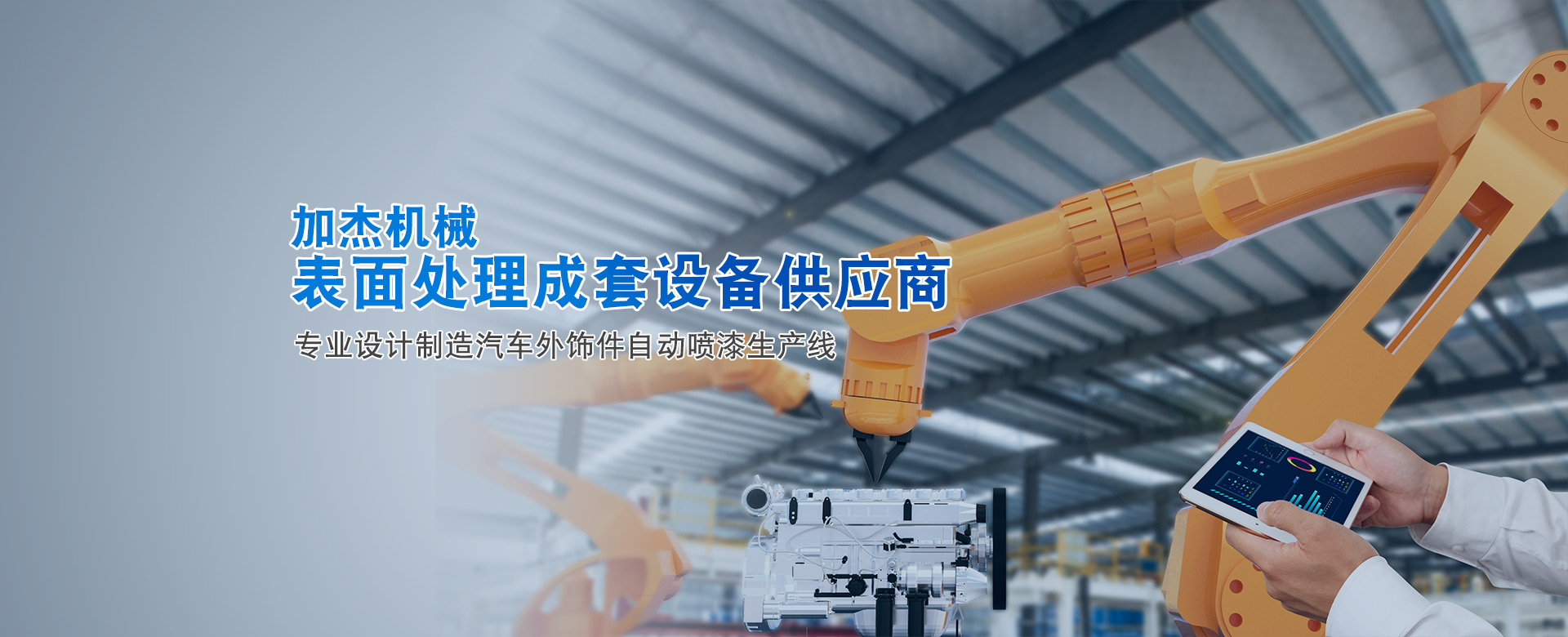 加杰智能裝備(廣東)有限公司是廣州市加杰機(jī)械設(shè)備有限公司的全資子公司,加杰成立于2007年。是一家專業(yè)于表面處理行業(yè)智能化涂裝設(shè)備的研發(fā)、設(shè)計(jì)、制造、安裝與售后為一體的綜合型企業(yè),專業(yè)于塑膠、金屬部件的噴漆、電泳、噴粉等成套自動(dòng)涂裝線交鑰匙工程。 公司在廣州花都和廣清產(chǎn)業(yè)園均有自建研發(fā)及生產(chǎn)基地,占地面積六萬(wàn)余㎡,旗下有加杰智能、川捷智能、漢潔科技、泰國(guó)加杰四家子公司。公司同華南理工、廣工、北理工等知名大學(xué)院校展開深度合作,并積極展開自主創(chuàng)新和...